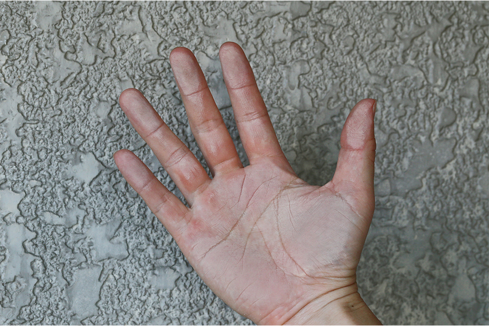 「白亜化現象」とも呼ばれ、外壁の塗膜の一部が劣化して塗膜の一部が粉化した状態です。